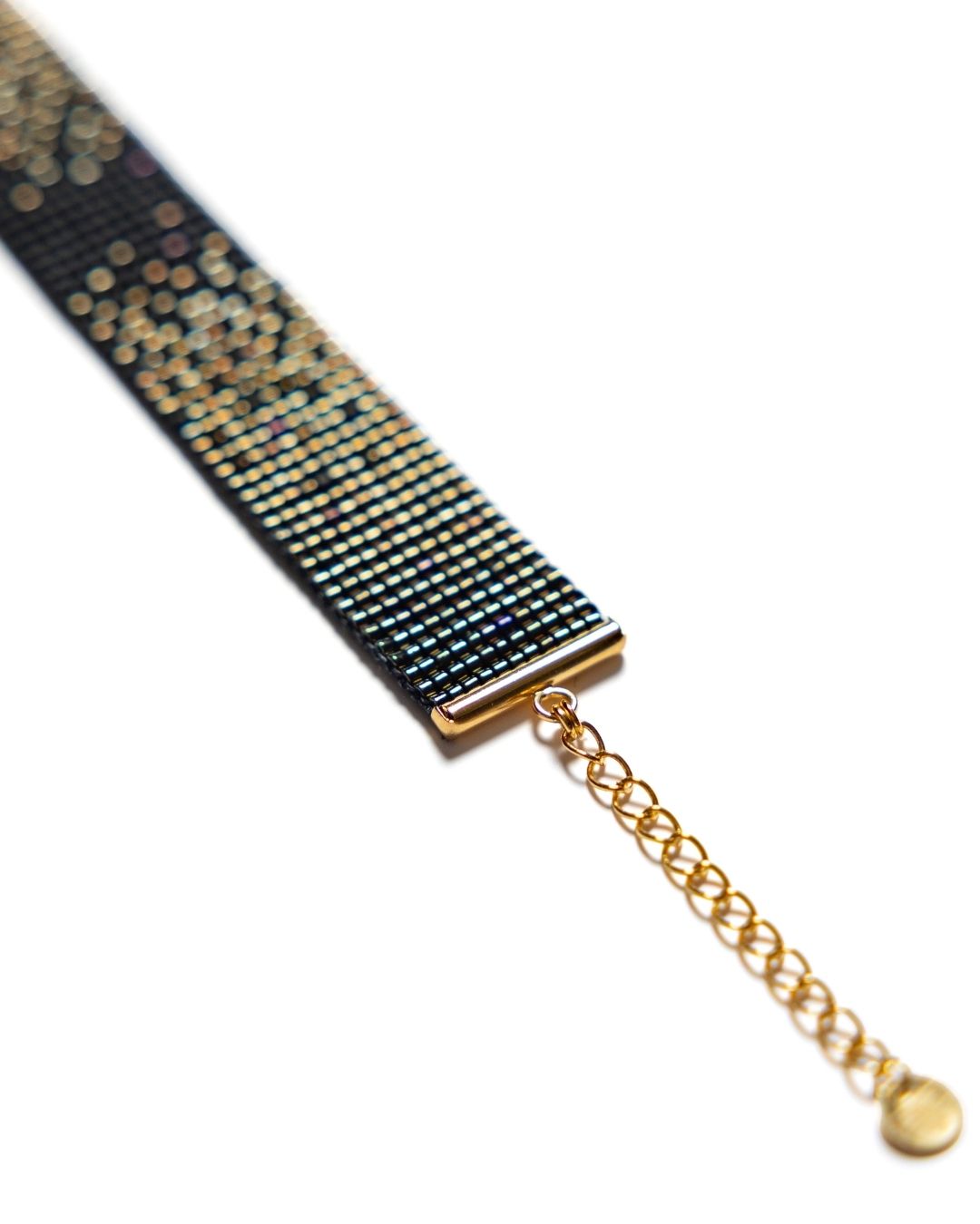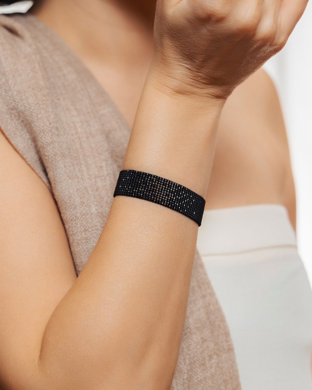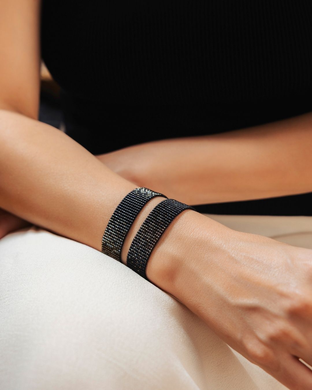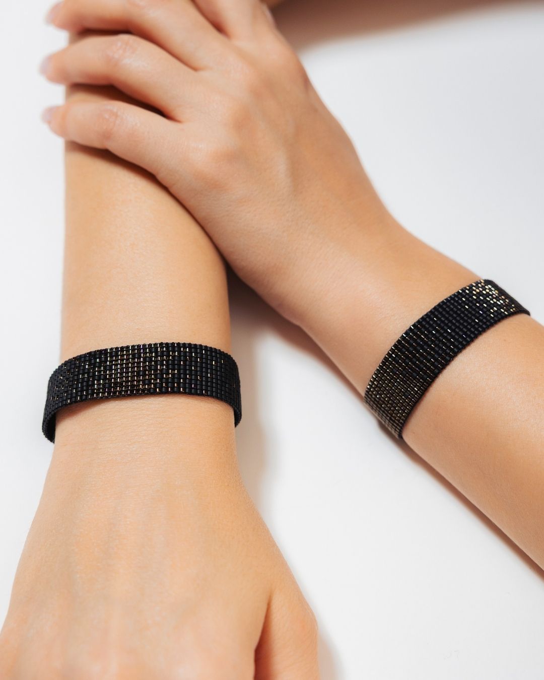 Created by French designer Marion Mazô, Manhattan blends matte and shiny black beads with iridescent details, offering a bold yet timeless style.
